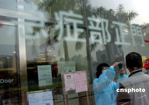 三月十一日,香港屯門醫(yī)院為進入急癥室者事前須探熱及洗手消毒。屯門醫(yī)院近日成為流行性感冒壓力下的重災(zāi)區(qū),因應(yīng)求診人數(shù)增加及流感高峰期,在急癥室實施發(fā)燒病人分流措施,預(yù)防流感擴散。中新社發(fā) 譚達明 攝