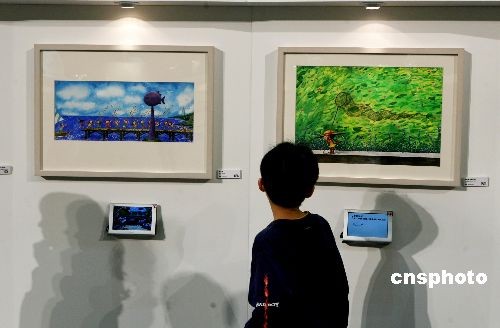 三月二十一日,《幾米創(chuàng)作十年展》亞洲巡回展在香港揭幕。幾米是臺灣著名繪本畫家,其作品曾被翻譯成數(shù)十種語言,在全球暢銷,當中更有《地下鐵》、《向左走向右走》等被改編成電影。中新社發(fā) 武仲林 攝