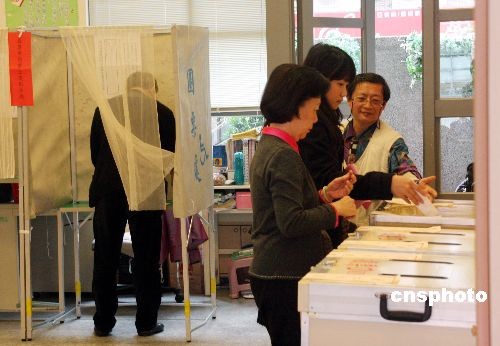 二00八臺(tái)灣地區(qū)領(lǐng)導(dǎo)人選舉投票舉行,圖為民眾在臺(tái)北一個(gè)投票所投票。此次大選,臺(tái)灣共有選舉人數(shù)17321606人。中新社發(fā) 黃少華 攝