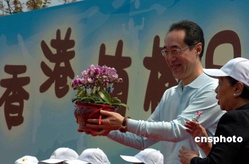 三月二十九日,香港舉行植樹日活動(dòng),香港政務(wù)司司長(zhǎng)唐英年及全國(guó)政協(xié)副主席董建華夫人董趙洪娉,應(yīng)邀擔(dān)任“二00八香港植樹日”活動(dòng)的主禮嘉賓。中新社發(fā) 譚達(dá)明 攝
