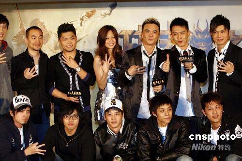 4月24日,《功夫之王》在臺(tái)灣首映,兩位男主角成龍、李連杰未能到場(chǎng)參加,由主題歌曲《預(yù)感》的制作人李玖哲和片尾曲《HERO》演唱組合“三角COOL”成員一起為臺(tái)北首映式捧場(chǎng)。中新社發(fā) 杜洋 攝