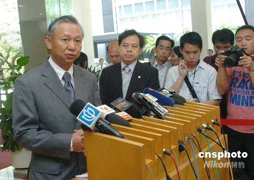 五月十三日,香港保安局局長(zhǎng)李少光就四川發(fā)生大地震,特別在政府合署西座大堂會(huì)見(jiàn)傳媒。他表示,一隊(duì)主要由消防員組成的二十人支援隊(duì)伍,會(huì)盡快趕赴災(zāi)區(qū)協(xié)助救援,隊(duì)伍包括十五名消防員,三名救護(hù)員,還有其他醫(yī)護(hù)人員等,他們會(huì)帶備生命探測(cè)器及自備帳篷,需要時(shí)會(huì)動(dòng)員更多人到當(dāng)?shù)鼐葹?zāi)。中新社發(fā) 鄧慶樂(lè) 攝