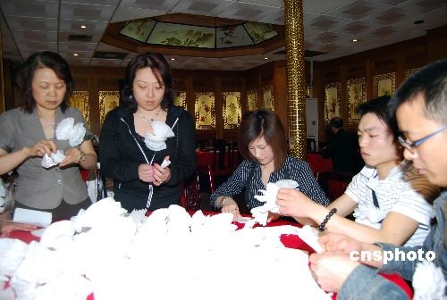 在中國(guó)“全國(guó)哀悼日”期間,法國(guó)華僑華人婦女聯(lián)合會(huì)的一些會(huì)員自發(fā)組織起來(lái),折疊大量紙花,供旅法僑胞、留學(xué)生等到中國(guó)駐法使館悼念汶川地震遇難同胞。