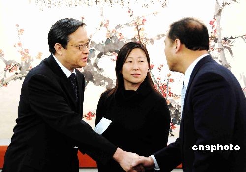 當?shù)貢r間五月二十日下午,大華府華僑華人及留學(xué)生代表來到中國駐美使館,悼念四川大地震死難同胞并舉行向中國地震災(zāi)區(qū)捐款儀式。大華府華僑華人迄今總共為災(zāi)區(qū)捐款近三十萬美元。圖為周文重大使(左)代表災(zāi)區(qū)接受北京大學(xué)校友會代表呂玫(中)、穆毅瑞(右)和其他僑社捐款,并感謝僑胞們一片愛心。
