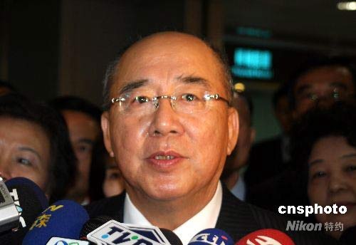 5月26日上午,由中國國民黨主席吳伯雄率領的中國國民黨訪問團一行啟程前往大陸。圖為吳伯雄在桃園機場登機前發(fā)表談話。中新社發(fā) 陳立宇 攝