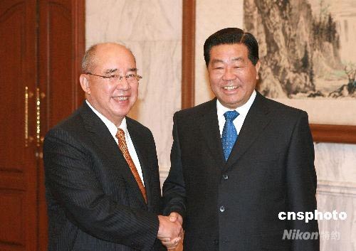 5月27日,中共中央政治局常委、全國政協(xié)主席賈慶林在北京會見中國國民黨主席吳伯雄。中新社發(fā) 廖文靜 攝