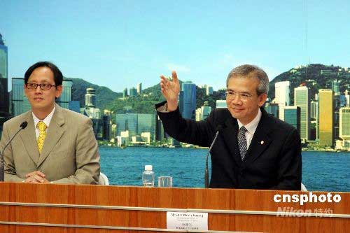 香港奧運(yùn)馬術(shù)公司行政總裁林煥光(右)和香港中旅社發(fā)言人吳熹安六月十日舉行新聞簡(jiǎn)報(bào)會(huì),宣布香港再獲北京奧組委分配六萬張奧運(yùn)馬術(shù)門票,將于六月十二日開售。香港中旅社將受委托作為門票銷售的票務(wù)代理。中新社發(fā) 黎金良 攝