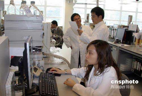 圖為香港賽馬會(huì)賽事化驗(yàn)所工作人員在進(jìn)行樣本檢驗(yàn)分析。北京奧運(yùn)會(huì)馬術(shù)比賽將于八月九日至二十一日在香港舉行,該項(xiàng)賽事的馬匹藥檢化驗(yàn)工作由實(shí)力雄厚、經(jīng)驗(yàn)豐富的香港賽馬會(huì)承擔(dān)。香港賽馬會(huì)賽事化驗(yàn)所每年檢驗(yàn)超過一萬八千個(gè)正式樣本,是國際馬術(shù)運(yùn)動(dòng)聯(lián)合會(huì)授予的四個(gè)“確證化驗(yàn)所”之一。中新社發(fā) 孫自法 攝