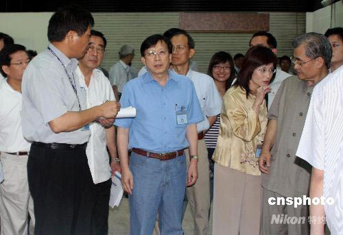 大陸觀光客七月四號即將來臺,六月二十一日,臺灣“行政院長”劉兆玄到臺北松山機(jī)場及日月潭視察接待準(zhǔn)備工作。他強(qiáng)調(diào),除了硬件要做到最好之外,更要注意人員的素質(zhì),希望大陸觀光客一踏進(jìn)機(jī)場,立刻感受到最好的氣氛。圖為劉兆玄在松山機(jī)場聽取稽查人員有關(guān)工作匯報。 中新社發(fā) 耿軍 攝