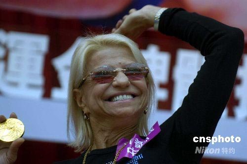 六月二十六日,俄羅斯“體操之母”高拔出席香港記者會。北京奧運日漸臨近,香港多個商場開展一系列迎奧運活動,這次奧運體操四面金牌得主有“體操之母”之稱的高拔(OlgaKorbut)首度率團來香港表演。中新社發(fā) 譚達明 攝