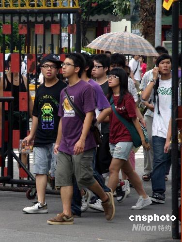 一年一度的臺灣“高考”——指考,即大學入學指定科目考試七月一日上午開考,全臺灣今年共有九萬三千六百八十一人報名參加指考。第一天有四萬多自然組考生先上陣,考物理、化學、生物。圖為臺北建中考場門口,考生們手持文具入場。中新社發(fā) 徐長安 攝