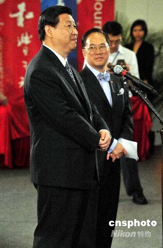 七月六日下午,國家副主席習(xí)近平在香港奧運(yùn)馬術(shù)場(chǎng)地,會(huì)見北京奧運(yùn)香港運(yùn)動(dòng)員代表。中新社發(fā) 譚達(dá)明 攝