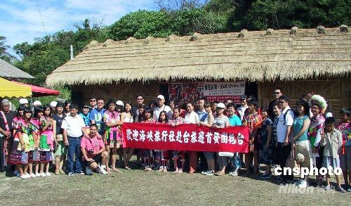 大陸居民赴臺旅游北京首發(fā)團(tuán)7月10日上午抵達(dá)臺東市,在臺東富岡里的巴沙哇力部落參加當(dāng)?shù)匾荒暌欢葢c祝豐收的豐年祭。中新社發(fā) 徐長安 攝
