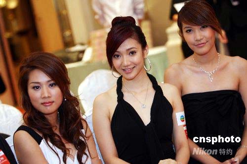 七月十五日,港姐張嘉兒(左)、王君馨(中)、周美欣盛裝出席在香格里拉酒店舉行的迪斯尼ABC與無線電視簽約啟動儀式。當(dāng)日,迪斯尼ABC國際電視與香港無線明珠臺攜手合作推出“明珠節(jié)目網(wǎng)上追”英文頻道,向公眾免費提供追看電視服務(wù)。中新社發(fā) 洪少葵 攝