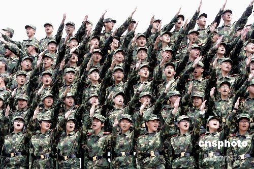 七月二十七日,為期十五天的第四屆“香港青少年軍事夏令營”結(jié)業(yè)典禮在香港新界新圍軍營舉行。圖為學(xué)員們演唱軍營歌曲。中新社發(fā) 張勤 攝
