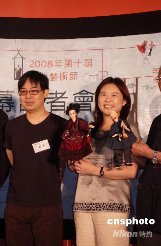二00八臺(tái)北藝術(shù)節(jié)將于本月七日至九月十四日在臺(tái)灣舉行,來自島內(nèi)外的八個(gè)表演團(tuán)隊(duì)將參加三十場(chǎng)藝術(shù)演出以及二十六場(chǎng)創(chuàng)作對(duì)談和講座。圖為四日舉行的記者會(huì)上,臺(tái)北市文化局長(zhǎng)李永萍與畫家?guī)酌椎人囆g(shù)家合影。中新社發(fā) 曾嘉 攝