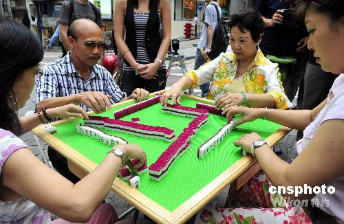 九月五日,首屆“世界麻將大賽”冠軍許宗澧在記者會上與其它選手比較高下。第二屆“世界麻將大賽”將于九月十九日至二十一日在澳門舉行,提供麻將競賽有史以來的最高額獎金一百萬美元。中新社發(fā) 譚達(dá)明 攝