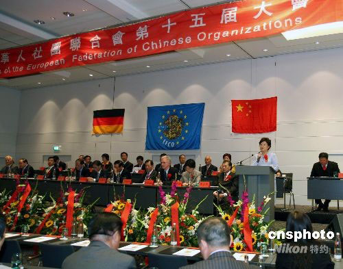 歐洲華僑華人社團(tuán)聯(lián)合會第十五屆大會9月10日在德國柏林開幕,歐洲25個國家的華僑華人代表和中國有關(guān)部門負(fù)責(zé)人等500余人出席開幕式。圖為中國國務(wù)院僑辦主任李海峰在開幕式上致辭。中新社發(fā) 歐時 攝