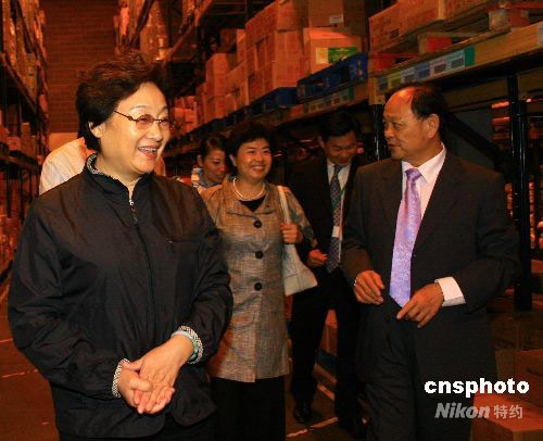 當(dāng)?shù)貢r(shí)間11日下午,抵英訪問的中國國務(wù)院僑辦主任李海峰前往當(dāng)?shù)厝A商企業(yè)“泗和行”,現(xiàn)場(chǎng)了解其經(jīng)營與發(fā)展?fàn)顩r。圖為李海峰(左)在泗和行老板謝貴全(右)的陪同下,參觀其現(xiàn)代化倉儲(chǔ)基地。中新社發(fā) 李鵬 攝