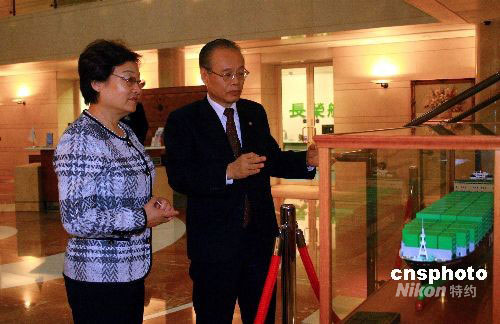 當(dāng)?shù)貢r間9月12日下午,正在倫敦訪問的中國國務(wù)院僑辦主任李海峰下午來到臺資長榮集團(tuán)英國總部參觀訪問,與長榮集團(tuán)高層會晤。圖為長榮集團(tuán)副總裁葉順利(右)向李海峰介紹長榮公司情況。中新社發(fā) 李鵬 攝