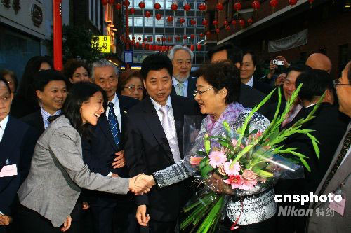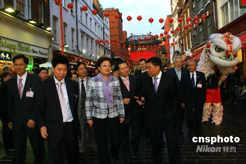 當(dāng)?shù)貢r(shí)間9月12日傍晚,中國(guó)國(guó)務(wù)院僑辦主任李海峰一行在倫敦唐人街參觀訪問,在華人僑領(lǐng)的陪同下參觀唐人街。中新社發(fā) 李鵬 攝