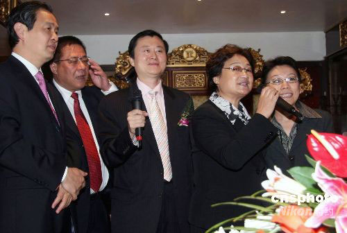 法國(guó)僑界十六日晚在巴黎舉行盛大歡迎會(huì),歡迎中國(guó)國(guó)務(wù)院僑辦主任李海峰率團(tuán)訪法。在僑胞要求下,李海峰(右二)演唱歌曲《;丶铱纯础罚瑲g迎僑胞常回祖國(guó)、常回家鄉(xiāng)走走看看。中新社發(fā) 吳衛(wèi)中 攝