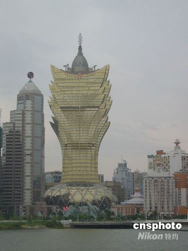 受臺(tái)風(fēng)“黑格比”影響,澳門二十三日十三時(shí)改掛三號風(fēng)球。圖為陰云籠罩下的澳門中銀大廈和新葡京酒店。中新社發(fā) 畢永光 攝