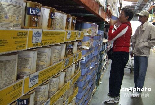 9月23日,幾位華人顧客在洛杉磯附近的一個大型超市選購美國產(chǎn)嬰兒奶粉。三鹿嬰兒奶粉事件在洛杉磯華人社區(qū)產(chǎn)生極大反響,應(yīng)國內(nèi)親友之托,許多洛杉磯華人華僑紛紛購買美國產(chǎn)嬰兒奶粉郵寄或捎帶回國。中新社發(fā) 張煒 攝