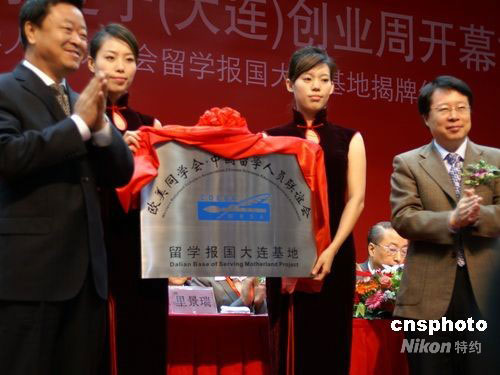 9月24日,由國家科技部、教育部、人力資源和社會保障部、國務(wù)院僑辦、中國科學(xué)院、歐美同學(xué)會·中國留學(xué)人員聯(lián)誼會和遼寧省政府聯(lián)合主辦的2008中國海外學(xué)子遼寧(大連)創(chuàng)業(yè)周在大連開幕,開幕式上還舉行了歐美同學(xué)會·中國留學(xué)人員聯(lián)誼會留學(xué)報國大連基地揭牌儀式。中新社發(fā) 宋太盛 攝
