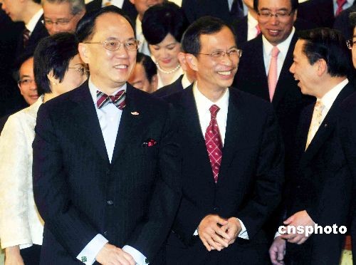 香港特區(qū)行政長官曾蔭權(quán)與立法會全體議員在立法會宴會廳拍照合照。