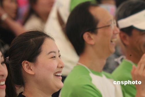 十月二十五日,國際小母牛香港分會董事局主席梁錦松、小母牛組織愛心大使伏明霞在香港維多利亞公園出席小母!案偛缴菩卸懔惆恕贝壬票荣,為四川災(zāi)區(qū)重建工作籌款。中新社發(fā) 武仲林 攝