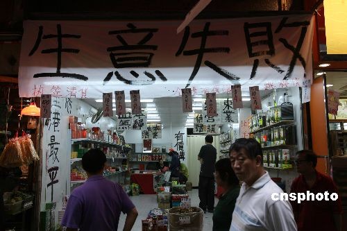 十一月二日,香港灣仔一店鋪打出結(jié)束營業(yè)、低價(jià)清盤的橫幅。數(shù)據(jù)表明,在剛剛過去的十月份,香港已有近五十家港企申請清盤,以主營制造業(yè)和零售業(yè)的中小企業(yè)為主,其中也不乏合俊、泰林等有一定規(guī)模和歷史的企業(yè)。業(yè)內(nèi)人士認(rèn)為,受金融海嘯直接影響而倒閉的公司將陸續(xù)出現(xiàn),今年年底將迎來倒閉高潮。中新社發(fā) 武仲林 攝
