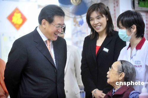 十一月三日上午,香港食物及衛(wèi)生局局長周一岳,探訪一所護老中心,了解政府流行性感冒防疫注射計劃的實施情況。特區(qū)政府當日開始,為高危人士免費注射流感疫苗。中新社發(fā) 譚達明 攝