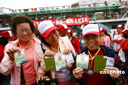 2008年11月8日上午11:30,由馬祖經(jīng)貿文化交流聯(lián)誼會理事長陳雪生先生帶隊,馬祖、金門及臺灣本島福州鄉(xiāng)親約500人搭乘“臺馬輪”從臺灣基隆經(jīng)彎靠馬祖福澳港后抵達福州港客運碼頭。此行目的主要是來榕推介馬祖旅游及赴大陸各地旅游。此舉是兩岸擴大“小三通”,特別是11月4日“兩會”商談簽署有關協(xié)議后,首次實現(xiàn)“兩馬”海上客運航線延伸至臺灣本島,對福州市進一步拓展與馬祖直接往來的范圍和層次有重要的意義。同時又是國臺辦王毅主任9·8期間在廈門舉行的“海峽西岸經(jīng)濟區(qū)論壇”上受權發(fā)布大陸方面五項便利兩岸同胞交往的新舉措之后,臺胞循“兩馬”航線并對接臺灣本島來榕人數(shù)最多的一個團組。馬祖經(jīng)貿文化交流聯(lián)誼會理事長陳雪生先生、副理事長曹爾忠、陳振清先生等馬祖知名人士也隨船抵達馬尾。據(jù)悉,截止今年10月,“兩馬”航線已運行3782航次,來往旅客達22.93萬人次。中新社發(fā) 祝敏松 攝