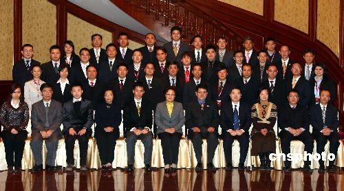 12月1日,國務(wù)院僑辦主任李海峰在北京釣魚臺(tái)國賓館會(huì)見宴請了第六期華裔新生代企業(yè)家中國經(jīng)濟(jì)高級(jí)研修班的全體學(xué)員,并合影留念。李海峰指出,中國正處于改革和發(fā)展的關(guān)鍵階段,也處于工業(yè)化、現(xiàn)代化的重要時(shí)期。當(dāng)前經(jīng)濟(jì)發(fā)展中遇到的很多新情況、新問題,需要我們依靠科技進(jìn)步、提高領(lǐng)導(dǎo)者素質(zhì)、創(chuàng)新管理來解決,需要我們在發(fā)展中來解決。這將為海外僑胞參加中國經(jīng)濟(jì)發(fā)展,分享中國機(jī)遇創(chuàng)造更加有利的條件和機(jī)會(huì)。中新社發(fā) 杜洋 攝