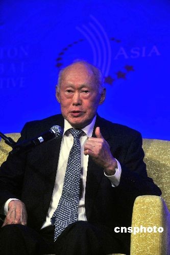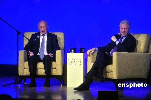圖為克林頓與新加坡資政李光耀(左)進(jìn)行對(duì)話。