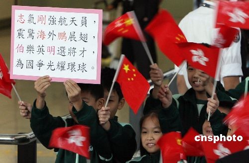 十二月五日,“神舟七號”載人航天飛行代表團抵達香港國際機場,展開為期四天的訪港行程。四十多人的代表團包括團長張建啟、航天員翟志剛、劉伯明和景海鵬,以及負責這次載人航天工程的各主要系統(tǒng)指揮或設計師。中新社發(fā) 武仲林 攝
