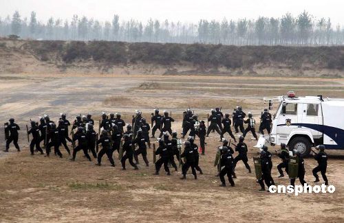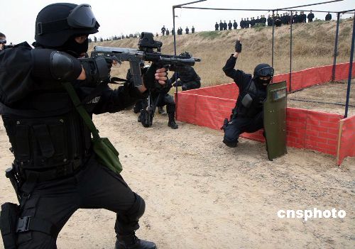 十一月十四日,鄭州特巡警支隊的特警隊員們在緊張地訓練,備戰(zhàn)于十二月上旬舉行的全省特警大比武。據(jù)悉,此次大比武將涉及到法律、法規(guī)、一千五百米武裝越野、手槍胸環(huán)靶射擊、八五或八八式狙擊步槍射擊等。該特巡警支隊自今年七月份組建以來,即擔負起特警反恐、處突的職能。中新社發(fā) 李志全 攝
