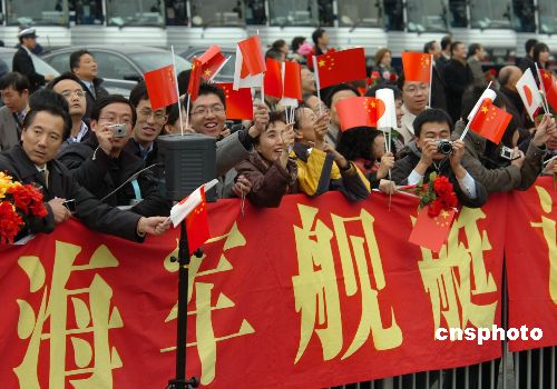 11月28日上午10點,中國海軍導(dǎo)彈驅(qū)逐艦“深圳”號抵達(dá)日本東京晴海碼頭開始對日本進(jìn)行正式友好訪問,日方舉行了盛大的歡迎儀式。中新社發(fā) 滕劍峰 攝