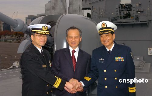 11月28日下午,正在日本進行正式友好訪問的中國海軍“深圳號”官兵開始與日本海上自衛(wèi)隊進行交流活動。中新社發(fā) 滕劍峰 攝