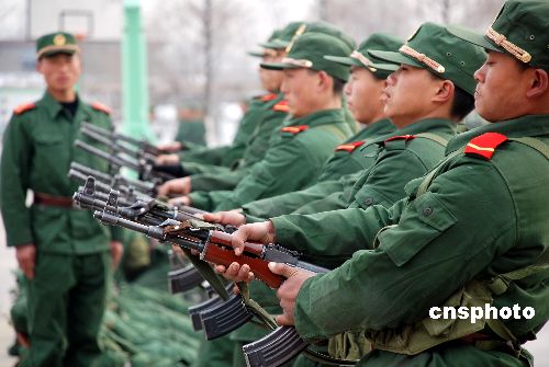 2008年2月2日,武警安徽總隊(duì)淮北支隊(duì)的新戰(zhàn)士正在進(jìn)行冬季訓(xùn)練。為了確保武警部隊(duì)在復(fù)雜惡劣的環(huán)境中隨時(shí)能拉得出、打得贏,連日來,武警安徽總隊(duì)淮北支隊(duì)針對(duì)駐地天寒地凍這一情況,通過冬練三九,盡快提高新戰(zhàn)士的軍事素質(zhì)和戰(zhàn)斗力。中新社發(fā) 謝正義 攝