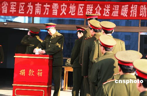 圖:山東省軍區(qū)向南方雪災地區(qū)捐款