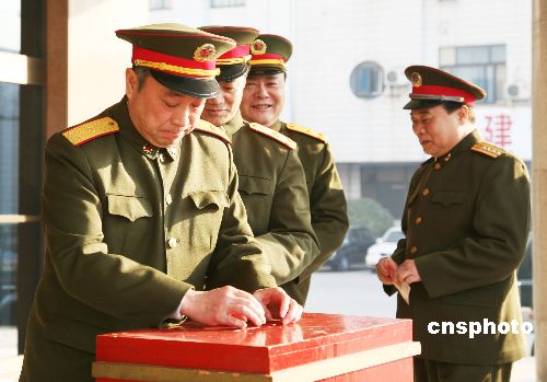 2月4日上午,山東省軍區(qū)機關為南方雪災地區(qū)群眾獻愛心捐助儀式在濟南舉行。省軍區(qū)司令員談文虎、政委張秉德等領導出席捐助儀式并帶頭捐款。中新社發(fā) 盧軍 攝