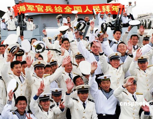 圖:海軍官兵向全國人民拜年