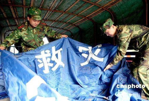 四川廣安組織民兵抗震應急隊援助汶川災區(qū)