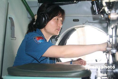 5月18日,中國(guó)空軍運(yùn)輸航空兵某師七名女飛行員駕機(jī)升空直飛災(zāi)區(qū),緊急空運(yùn)物資。上午11時(shí)33分,由女飛行員宋雪飛、王亞平、陳宇、陳金蘭、曹艷艷、王鴻、劉文力駕駛的7架飛機(jī)裝滿30多噸救災(zāi)物資先后昂首起飛,15時(shí)38分全部到達(dá)成都雙流機(jī)場(chǎng)。圖為女飛行員檢查機(jī)載設(shè)備。中新社發(fā) 周建華 攝