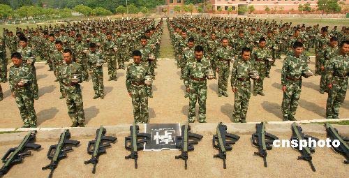 5月19日14時28分,武警駐無錫某部官兵在訓(xùn)練場向汶川大地震遇難同胞默哀3分鐘。當(dāng)天,武警部隊全體官兵在各自崗位上以不同方式向地震遇難者致以深切哀悼。據(jù)武警指揮中心5月16日統(tǒng)計,在這次四川抗震救災(zāi)行動中,武警部隊已出動近30000名官兵,共轉(zhuǎn)移、救治群眾8.9萬余人,搜救、挖掘被壓埋群眾6270人,目前全軍和武警部隊捐款已達1.5億多元。中新社發(fā) 李 杰 攝