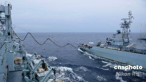 9月中旬,中國海軍南海艦隊(duì)某勤務(wù)船大隊(duì)與作戰(zhàn)艦艇在某海域進(jìn)行海上協(xié)同補(bǔ)給訓(xùn)練。該大隊(duì)立足實(shí)戰(zhàn),不斷探索海上保障新模式,綜合保障能力得到大幅提升。中新社發(fā) 劉林 攝