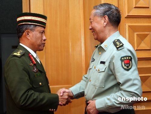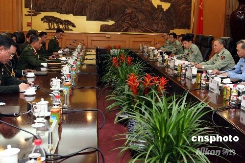 中央軍委委員、中國人民解放軍總參謀長陳炳德上將,9月26日在北京八一大樓會見應(yīng)邀來華觀摩“礪兵--2008”演習(xí)的文萊、喀麥隆、老撾、泰國等軍隊領(lǐng)導(dǎo)人。中新社發(fā) 宋吉河 攝