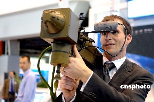 11月4日,第七屆中國(guó)國(guó)際航空航天博覽會(huì)在珠海開(kāi)幕,二號(hào)館的中國(guó)防務(wù)展倍受中外關(guān)注,特別是遠(yuǎn)程制導(dǎo)多管火箭武器系統(tǒng)、地空導(dǎo)彈武器系統(tǒng)、地地導(dǎo)彈武器系統(tǒng)、車載防空導(dǎo)彈系統(tǒng)、神州七號(hào)飛船軌道艙、滑翔增程精確制導(dǎo)炸彈、運(yùn)載火箭、衛(wèi)星等。這是外國(guó)一專業(yè)人士對(duì)中國(guó)生產(chǎn)的射手訓(xùn)練模擬器頗感興趣。中新社發(fā) 陳文 攝